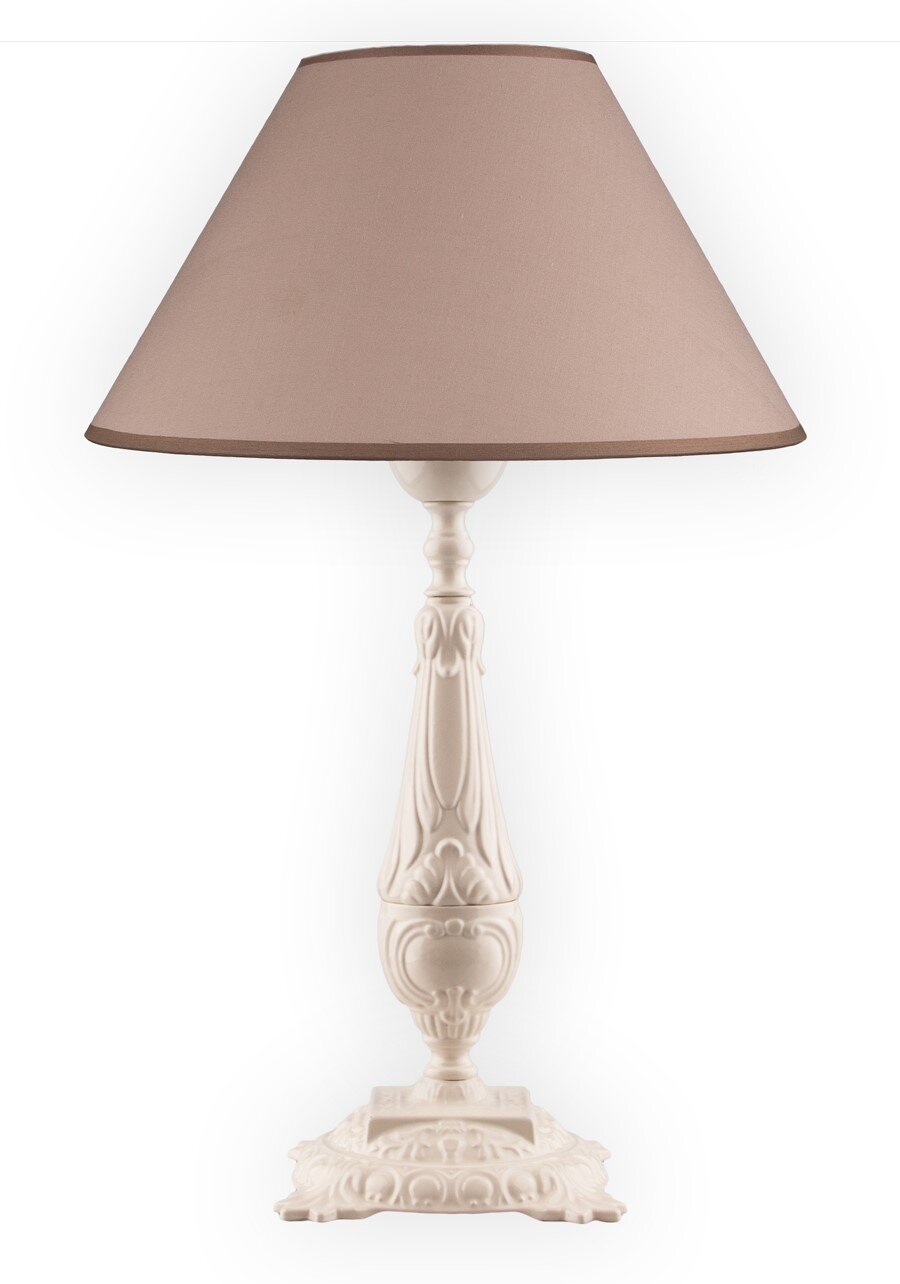 Falconidy Serisi Kahverengi Kumaş Başlıklı Krem Burj Ayak Abajur